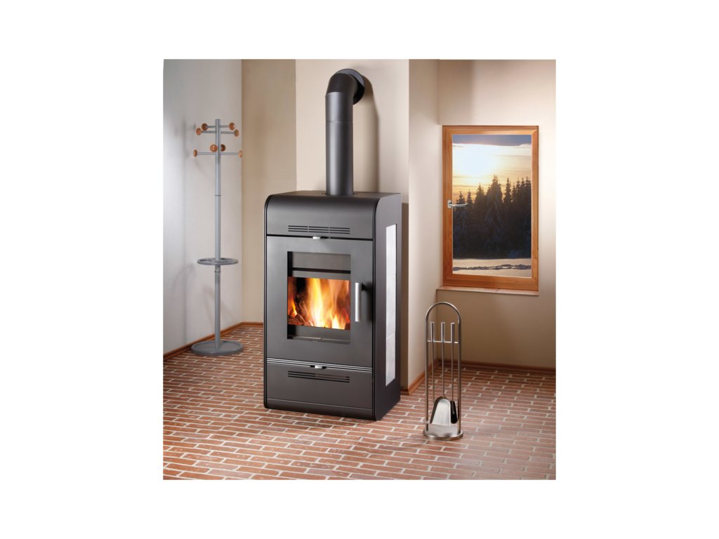Teplovodní krbová kamna ANDRUS s výměníkem, antracit/šedá dlažba, madlo ALU