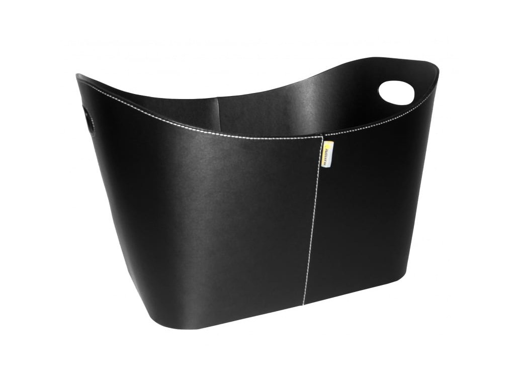 Nejpopulárnější interiérový koš potažený černou umělou kůží s bílým prošíváním po obvodu. Z vnitřní strany koše je černá látka proti poškrábání.
