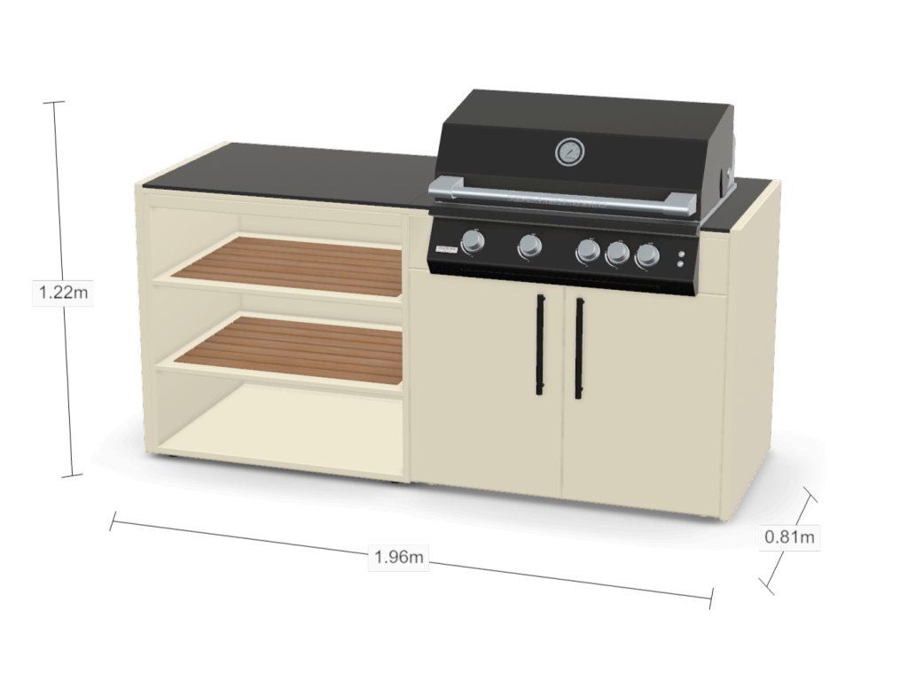Jde o mini sestavu. Najdete zde vestavný plynový gril a policový díl. A i tak vaření venku může začít :-)