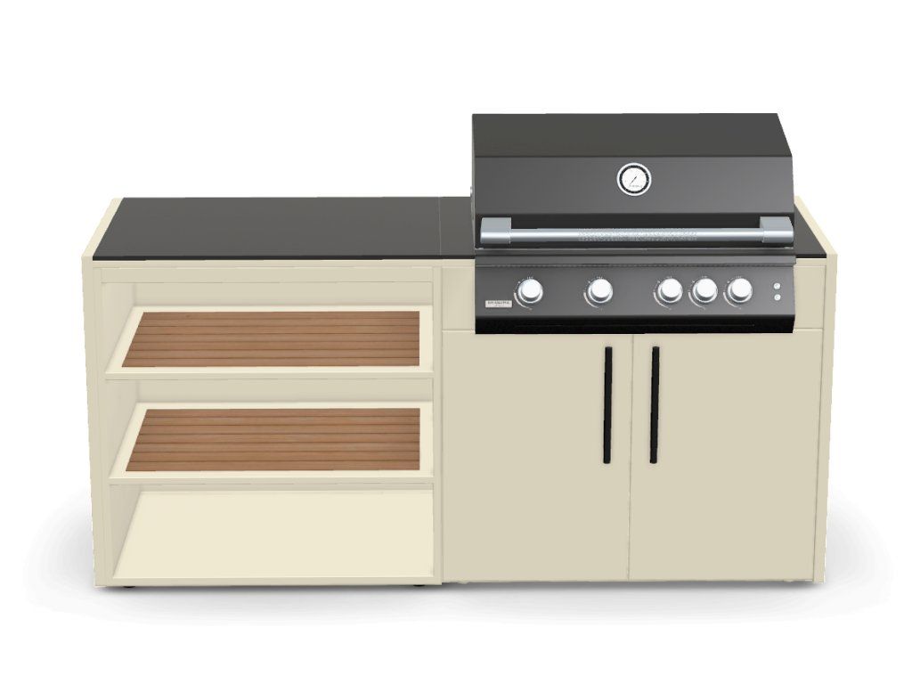 Chcete něco jednoduchého, jen super gril a dostatečnou pracovní plochu? Využijte této konfigurace kuchyňské linky BRABURA!