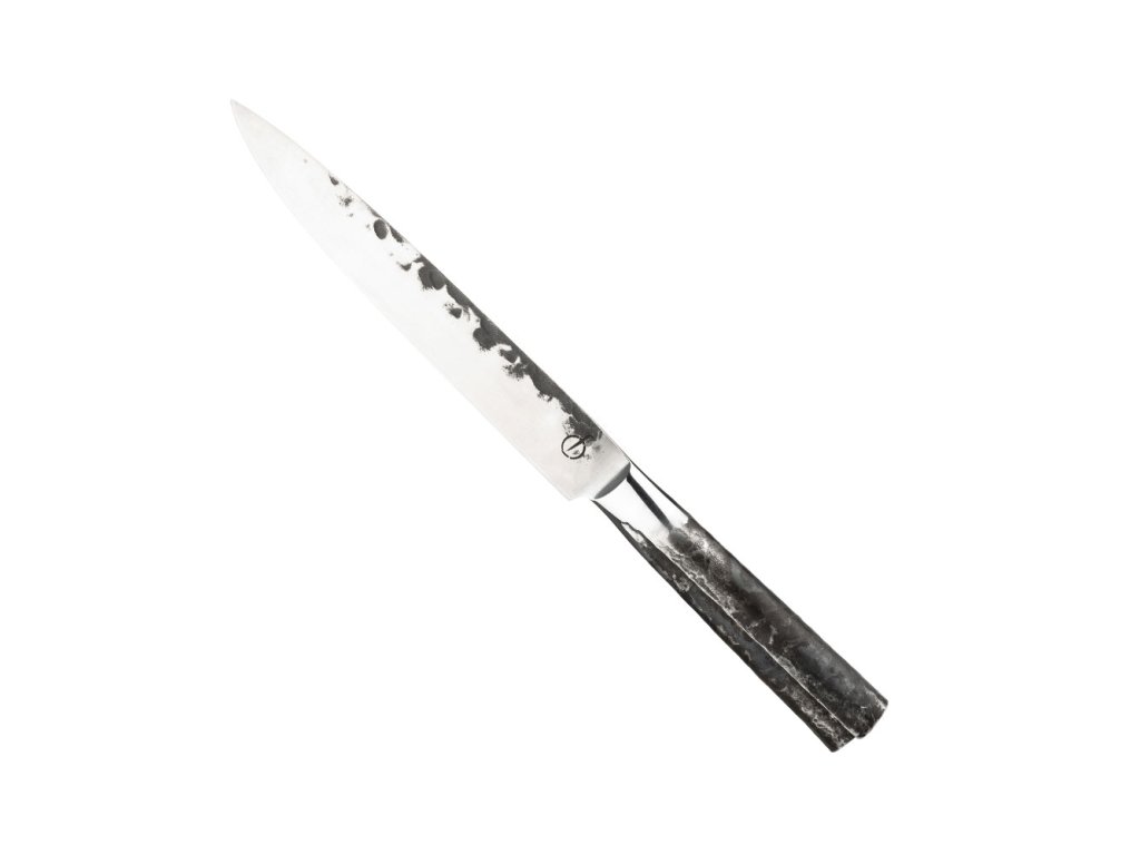 Materiál japonská ocel 440C / tvrdost 58 Rockwell Délka / tloušťka čepele 20,5 cm / 2 mm Úhel broušení 18° Provedení ruční kování Balení dřevěný boxDoplňkové parametry