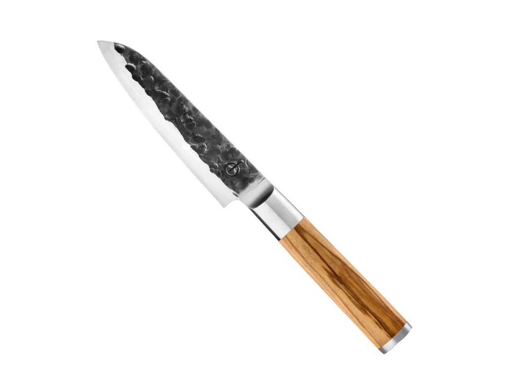 Materiál japonská ocel 440C / tvrdost 58 Rockwell Délka / tloušťka čepele 14 cm / 2 mm Úhel broušení 18° Provedení ruční kování / rukojeť z olivového dřeva Balení dřevěný boxDoplňkové parametry