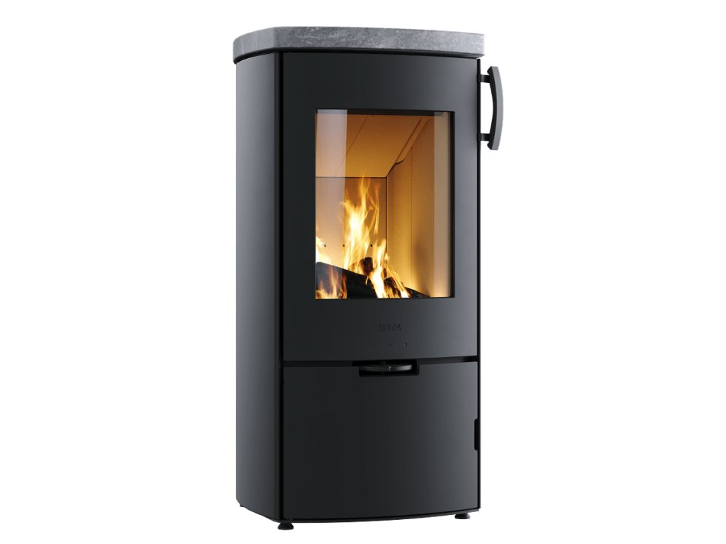 Ohromí hlavně perfektním a čistým spalováním s vysokou účinností včetně systému oplachu skla sekundárním vzduchem.
