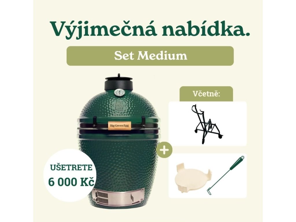 Set obsahuje · Big Green Egg velikost M · Integrovaný pojízdný stojan · ConvEGGtor · Pohrabáč