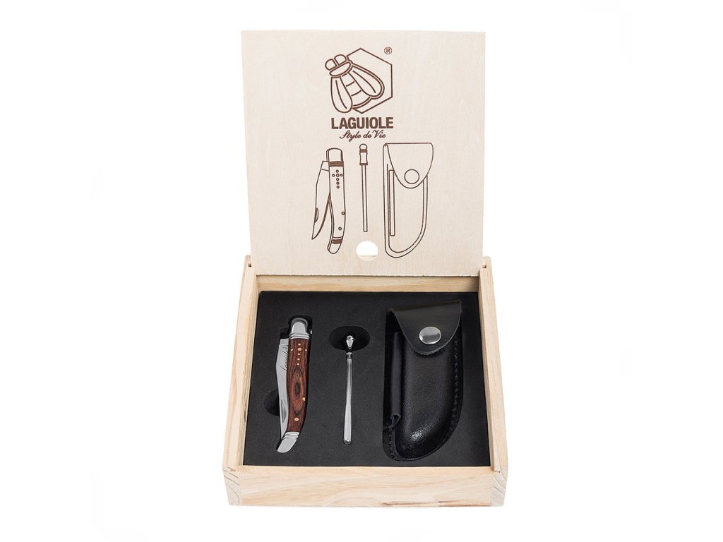 LAGUIOLE Luxury - kapesní nůž s pouzdrem a brouskem - rukojeť palisandr