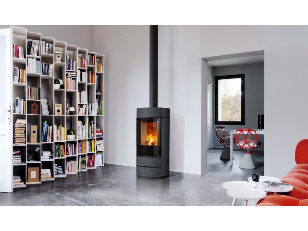 Celková kompozice těchto kamen se vyznačuje střídáním hladkých a zdobených povrchů a rozhodně odvážným designem. Keramický obklad se nabízí v barvách Bianco, Ardesia, Grigio Cerato, Rosso Lava nebo dvoubarevné Bianco Grigio/Terra Cotta a Bianco/Ardesia. Dvířka se zapuštěným zaobleným sklem nabízí velkolepý výhled na plameny. K dispozici také se systémem BCS (automatická regulace hoření).