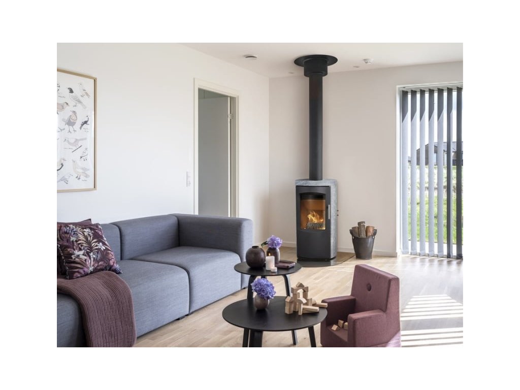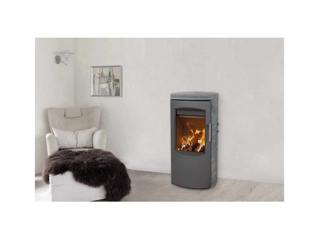 Kamna nabízí možnost kompletního obkladu mastkem nebo pískovcem Blackwood a tím i prodloužení tepelného komfortu.