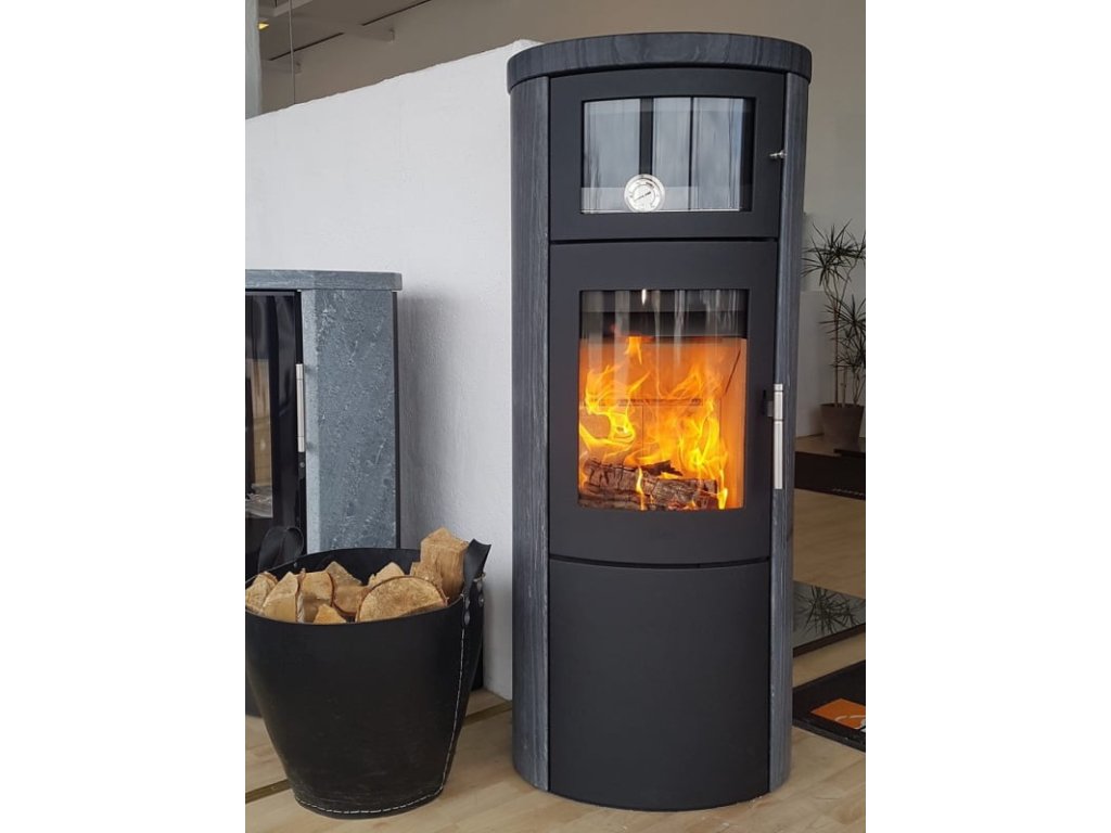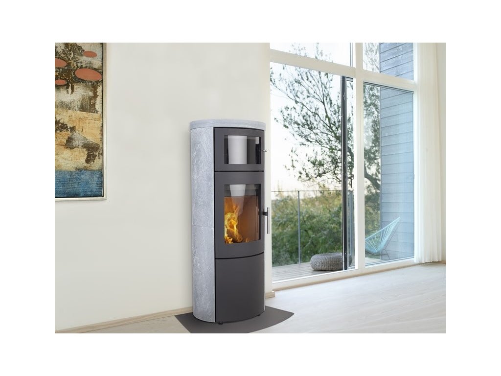 Tato modelová řada nabízí integrovanou pec nad spalovací komorou a také akumulaci ve formě obkladu celých bočnic včetně horní desky v mastku, pískovci, vápenci a také keramice s výběrem ze 42 barev.