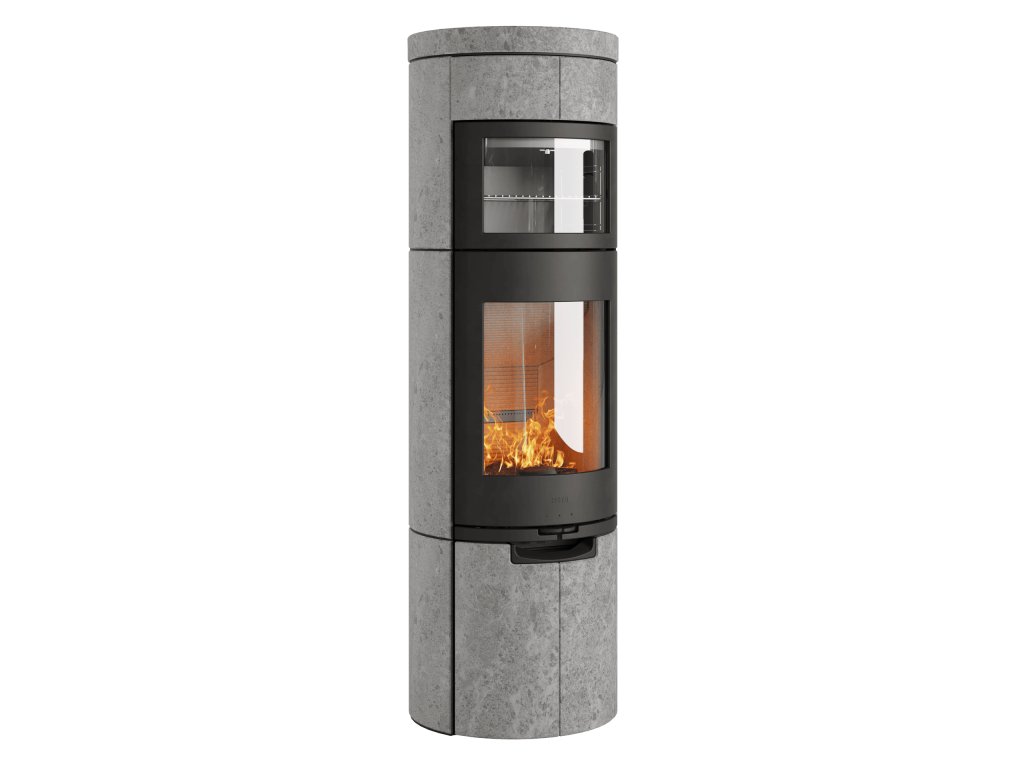 Tento model kamen Scan-Line 920B je kompletně obložen z masivního přírodního kamene mastek, šedý elegantní pískovec Greywood, nebo vápenec, čímž je docíleno mnohem vyšší akumulace tepla. Masivní obklad celých kamen i ze zadní strany, díky tomu jsou pohledová ze všech stran.