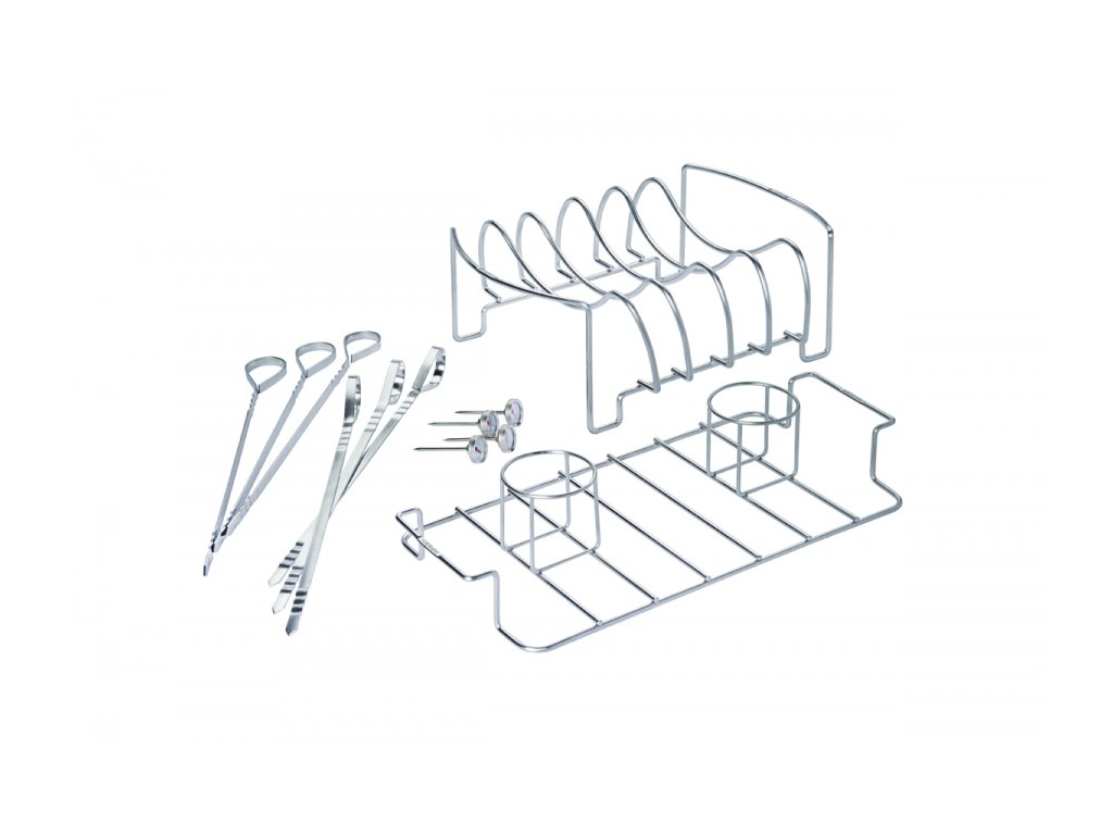 Sada obsahuje: 1x nerezový masivní velký stojan na žebírka (38 x 29 x 13 cm) 1x nerezový stojan na 2 kuřata (45 x 21 x 8 cm) 6x nerezová jehla na špízy (stejné jako 70015) 4x malé teploměry (průměr ciferníku 2,5 cm a délka jehly 6 cm)Diskuze